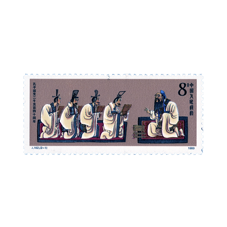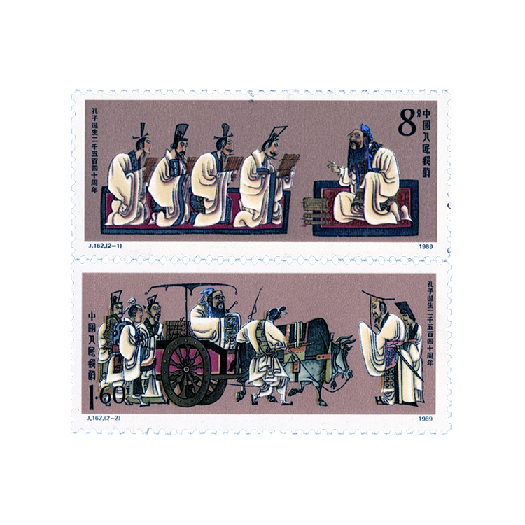 1989年9月28日,为纪念孔子诞生2540周年,邮电部发行了《孔子诞生二千五百四十周年》纪念邮票,全套2枚,小型张1枚。