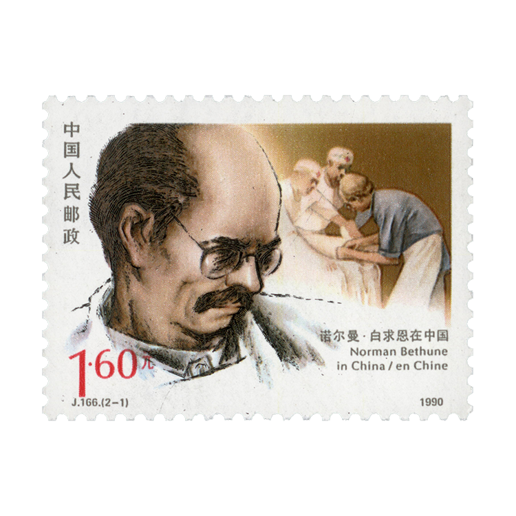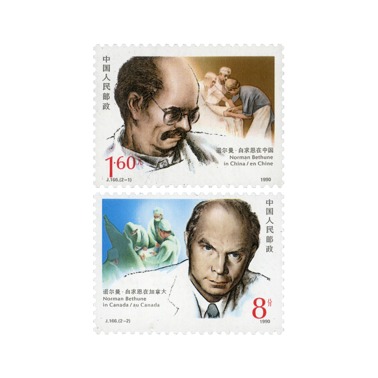 邮电部为纪念诺尔曼·白求恩诞生一百周年1990年3月3日发行,1套2枚。