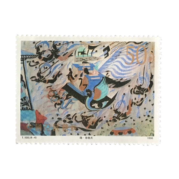 1990年7月10日,为了宣扬中华民族光辉灿烂的古代文化艺术遗产,邮电部发行了《敦煌壁画(第三组)》特种邮票,全套4枚。