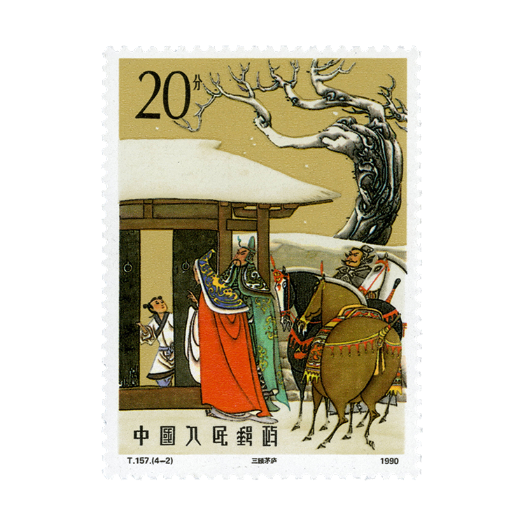 第二枚“三顾茅庐”选自第三十七回“司马徽再荐名士 刘玄德三顾草庐”。