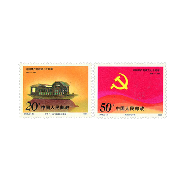 邮电部于1991年7月1日发行《中国共产党成立七十周年》邮票,一套两枚。