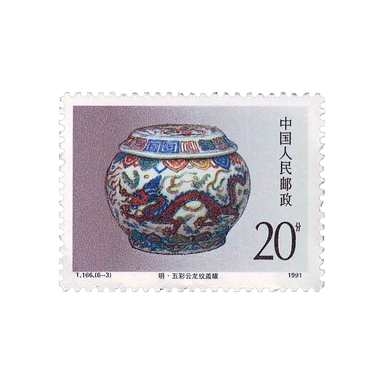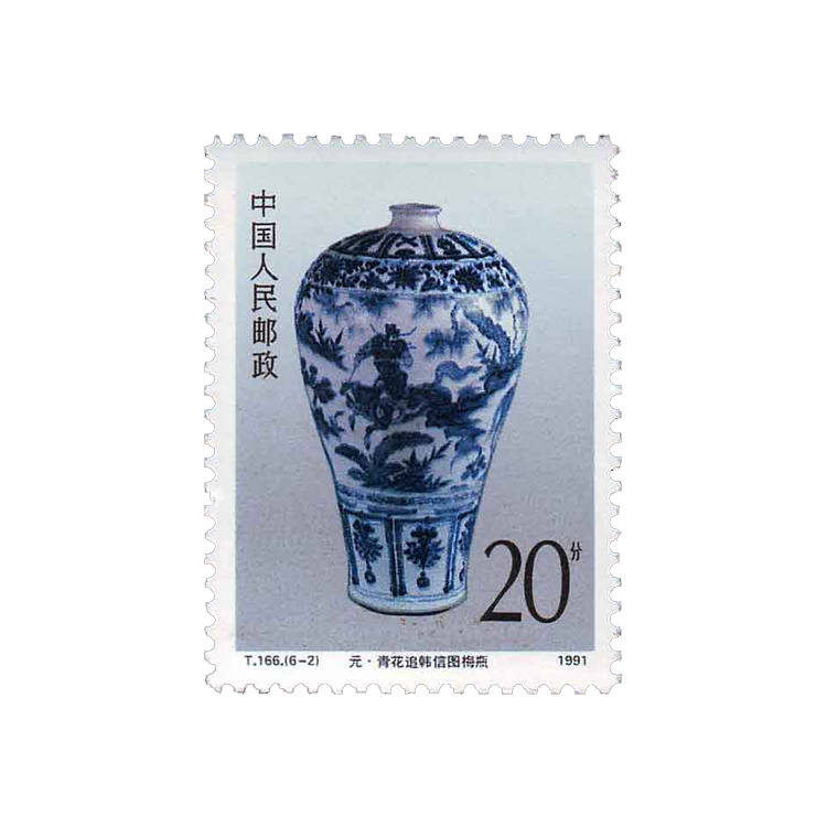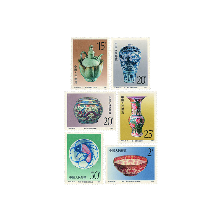 全套邮票6枚,图案均为原物的精美照片衬以过渡的底色。面色匀称、鲜艳、典雅。精良的设计与国家一级文物的瓷器图案,对于瓷器及邮票爱好者来说,都具有一定的收藏价值。