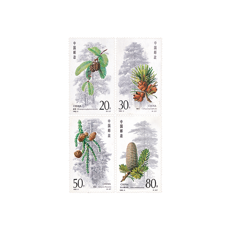 邮电部于1992年03月10日发行《杉树》邮票,一套四枚。