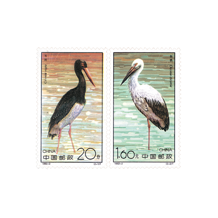 邮电部于1992年02月20日发行《鹳》邮票,一套两枚。