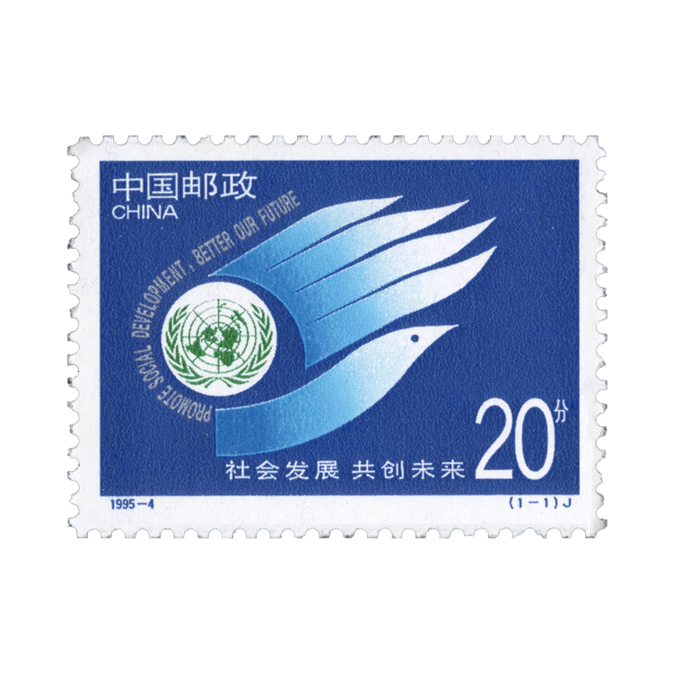 1995年3月6日,为了祝贺联合国社会发展世界首脑会议召开,邮电部发行了《社会发展、共创未来》纪念邮票,全套1枚。