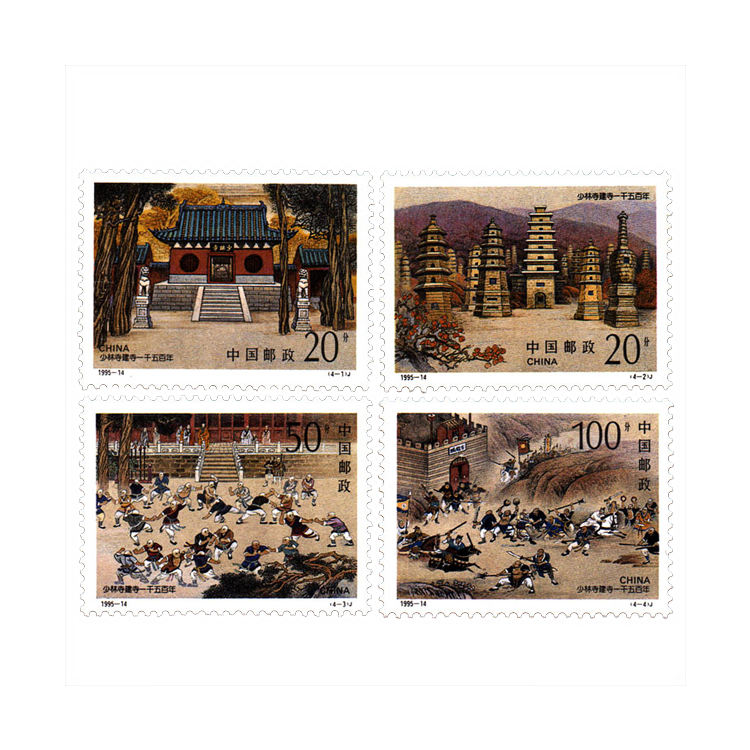 1995年8月30日,为纪念少林寺建寺1500年,邮电部发行了《少林寺建寺一千五百年》纪念邮票,全套4枚。