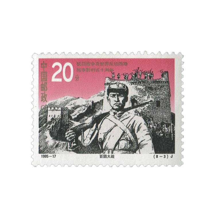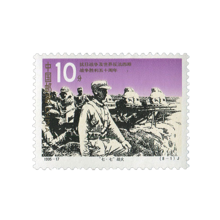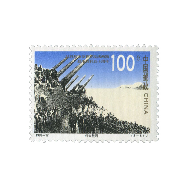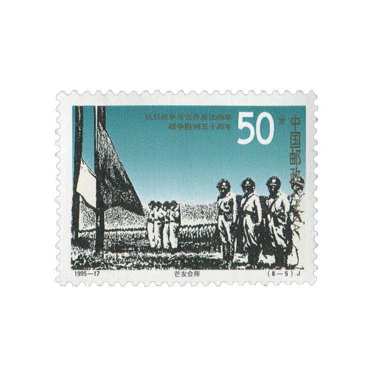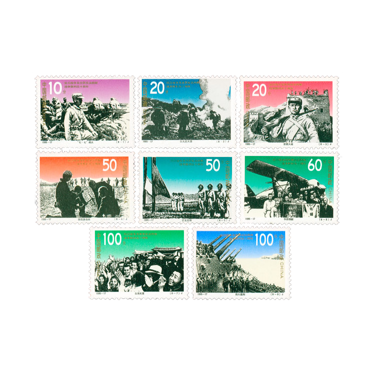1995年9月3日,为纪念抗日战争及世界反法西斯战争胜利50周年,邮电部发行了《抗日战争及世界反法西斯战争胜利五十周年》纪念邮票,全套8枚。