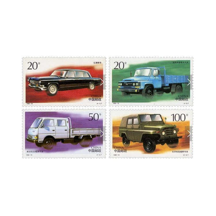 1996年7月15日,为了纪念我国汽车发展40周年,邮电部于发行了《中国汽车》特种邮票,全套4枚。