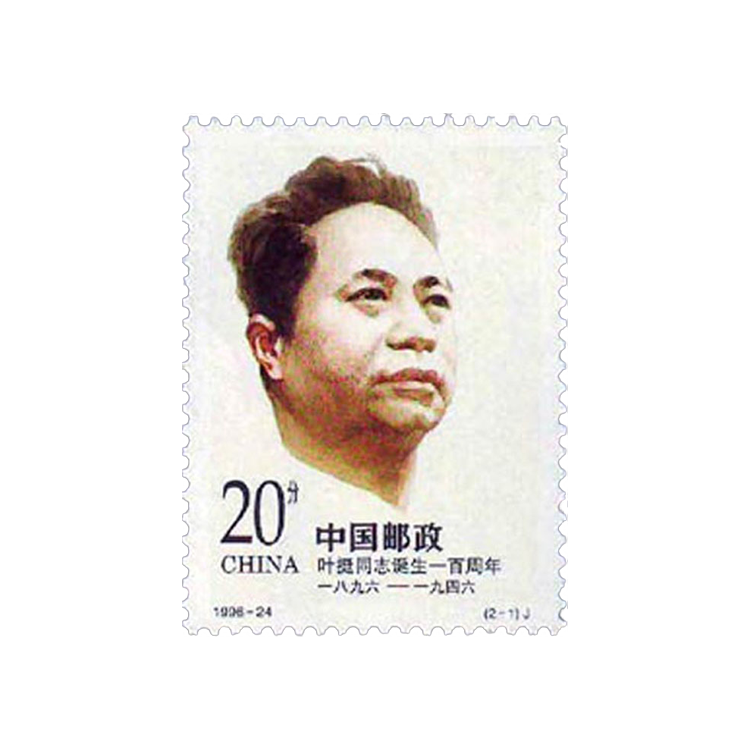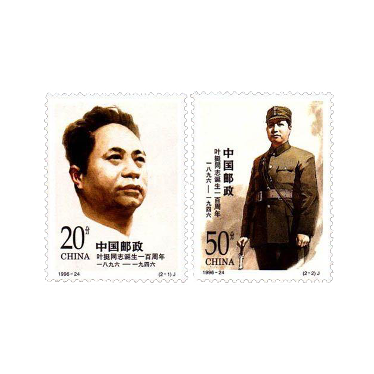 1996年9月10日,为纪念叶挺同志诞辰100周年,邮电部发行了《叶挺同志诞生一百周年》纪念邮票,全套2枚。