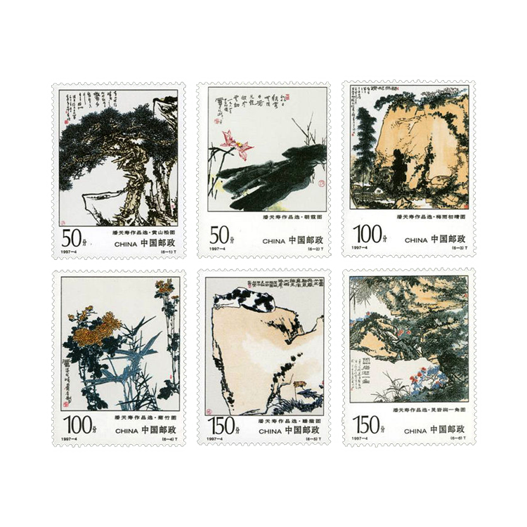 1997年3月14日,为纪念潘天寿先生诞生100周年,邮电部发行了《潘天寿作品选》特种邮票,全套6枚。