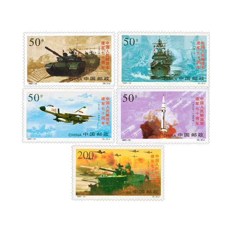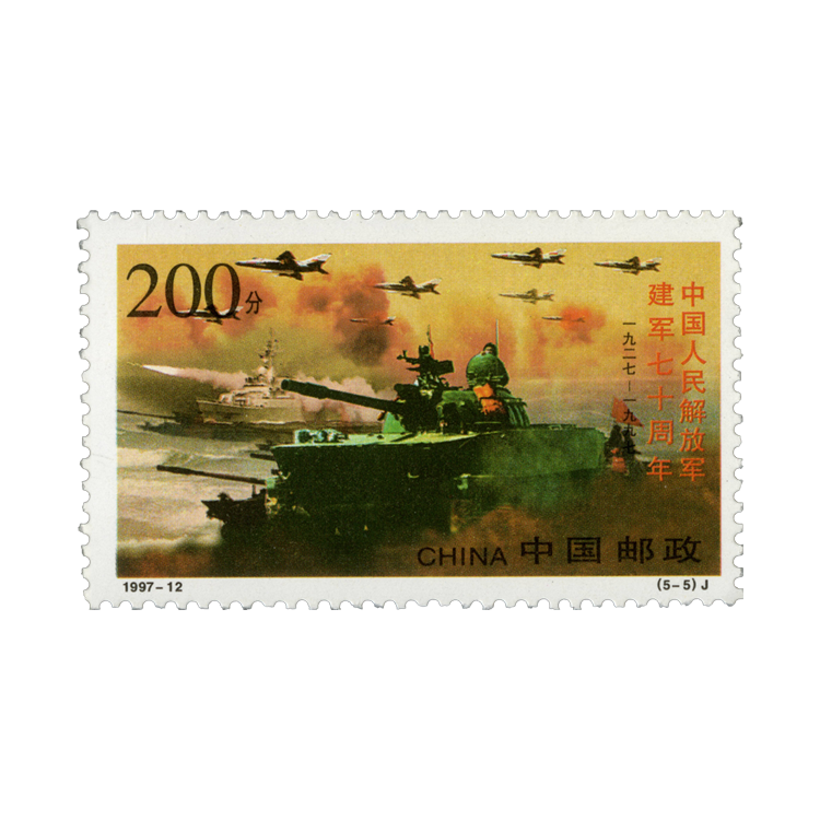 1997年8月1日,为纪念中国人民解放军建军70周年,邮电部发行了《中国人民解放军建军七十周年》纪念邮票,全套5枚。