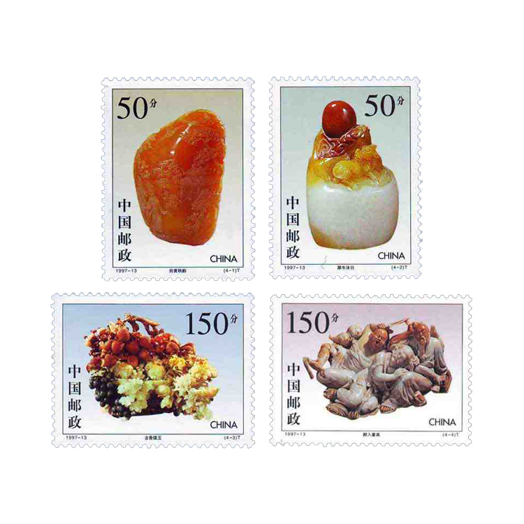1997年8月17日,为了展示中国民间雕刻艺术成就,邮电部发行了《寿山石雕》特种邮票,全套4枚,小型张1枚。