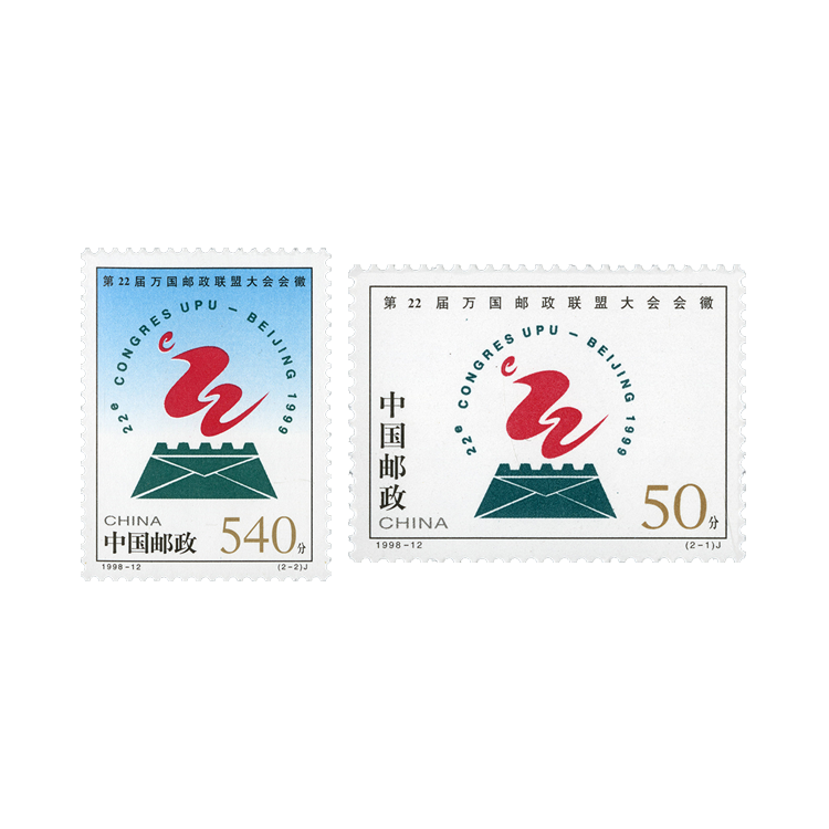 1998年5月15日,为祝贺1999年万国邮联第22届大会在我国举行,信息产业部发行了《第22届万国邮政联盟大会会徽》纪念邮票,全套2枚。