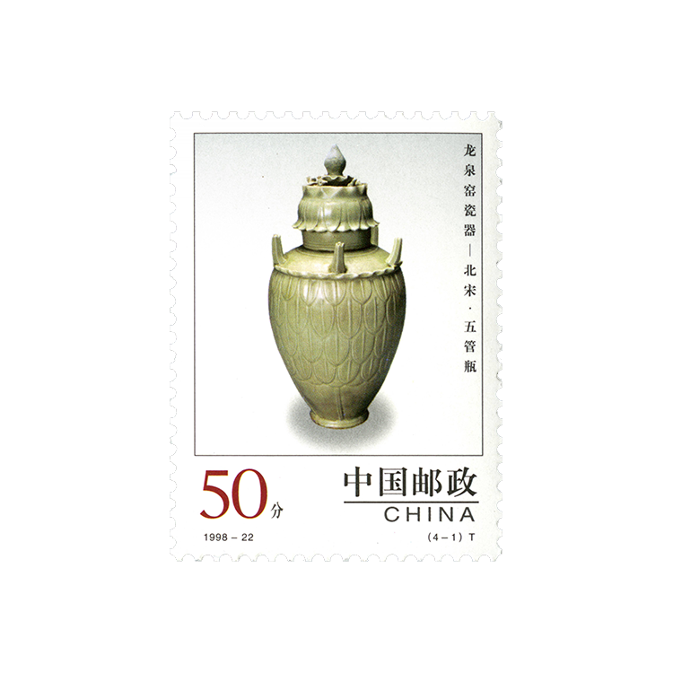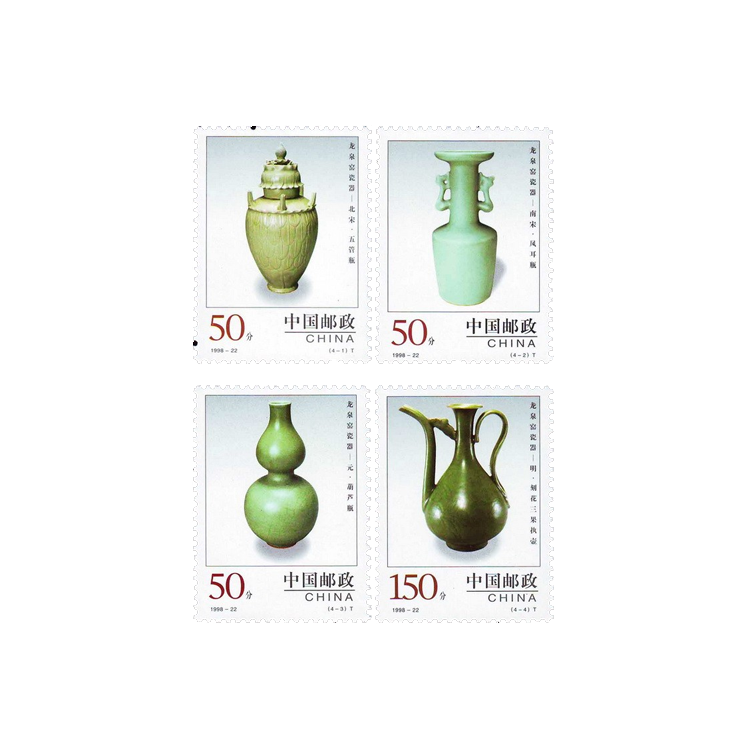1998年10月13日,为了反映中国陶瓷艺术悠久灿烂的历史,国家邮政局发行了《中国陶瓷-龙泉窑瓷器》特种邮票,全套4枚。