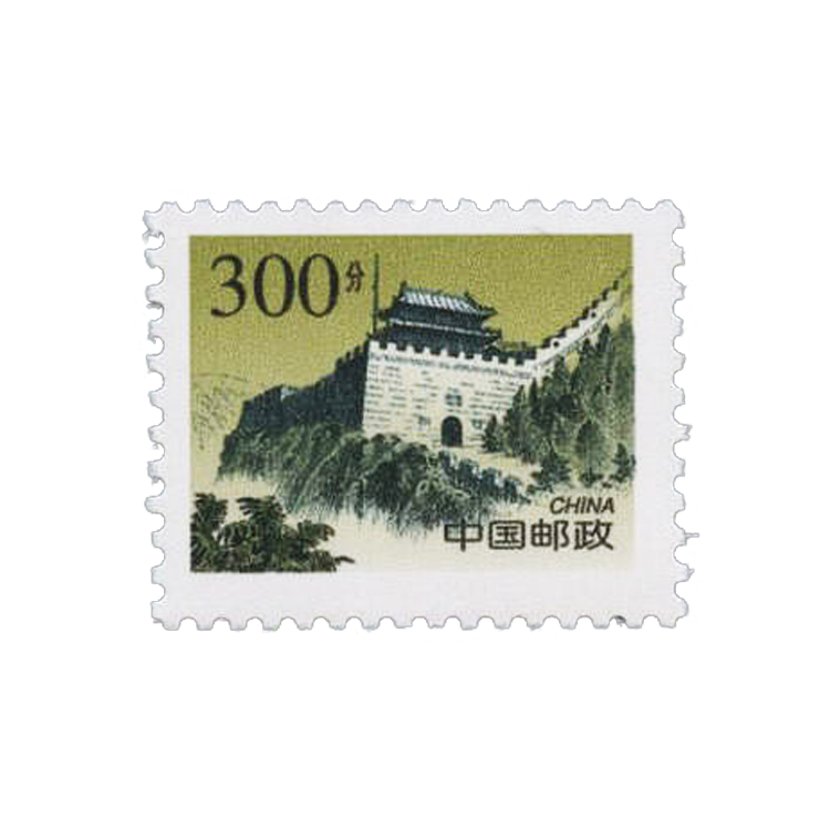 普通邮票一般采用方形小票幅。《长城》普票大部分是25毫米×20毫米的横式小票,它比《民居》普票矮10毫米,最后三枚高值票是31毫米×27毫米的中型横票,也许横长方形更便于设计者展现长城的雄伟风采。24枚票图中有两处关隘(山海关、金山岭)是重复出现的,但设计时采用不同角度取景的办法,即使全部邮票排在一起也不会有重复之感。