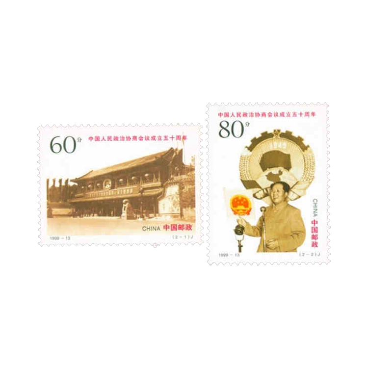 1999年9月21日,国家邮政局发行了《中国人民政治协商会议成立五十周年》纪念邮票,1套2枚。