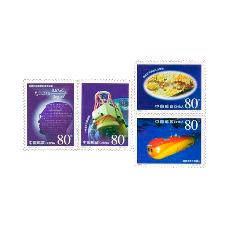 1999-16 《科技成果》特种票邮为中国科学院五十华诞发行。作为国家科学技术方面最高学术机构和全国自然科学与高新技术综合研究发展中心,五十年来,中国科学院取得了举世瞩目的成就,为我国经济建设与社会发展,为人类文明与进步作出了应有的贡献,邮票展示的即是中国科学院几项在国际上有重大影响的科技成果。