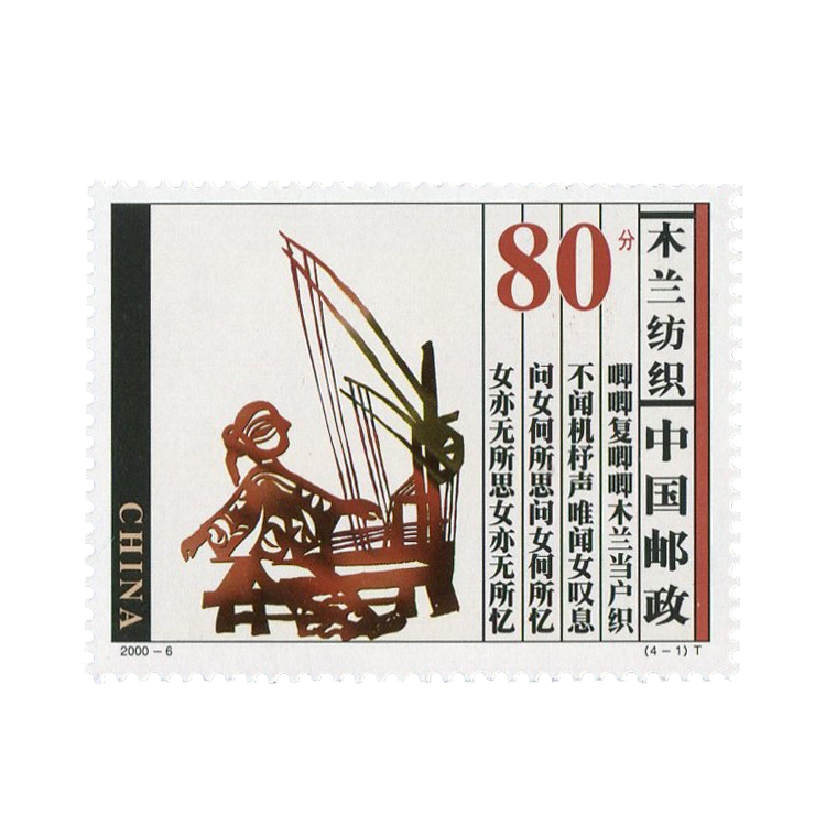 2000年4月30日,国家邮政局发行了《木兰从军》特种邮票1套4枚。