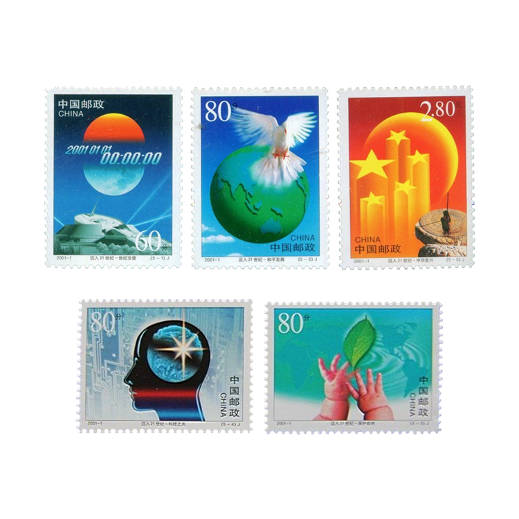 国家邮政局2001年1月1日发行《世纪交替?千年更始——迈入21世纪》纪念邮票1套5枚。