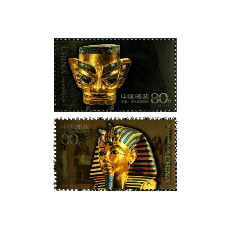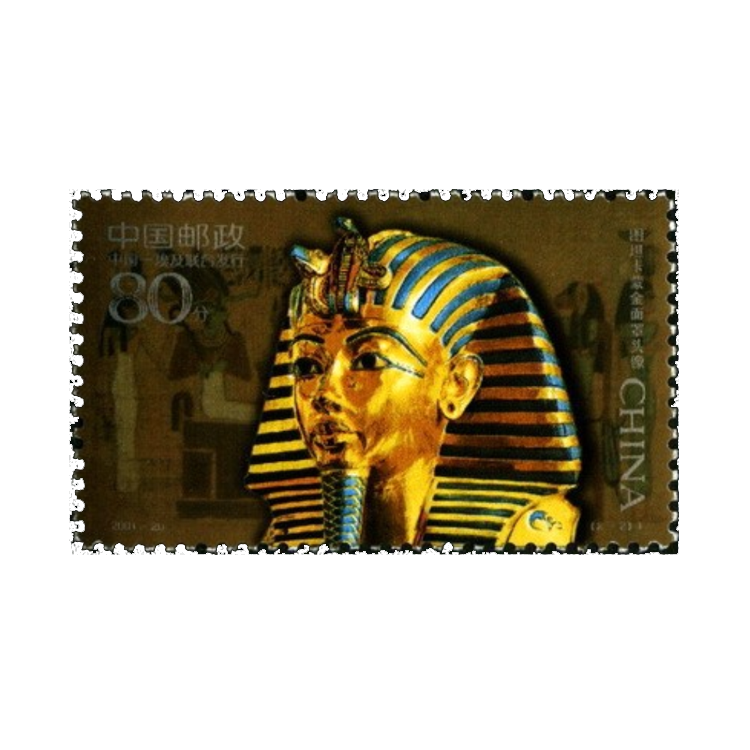 2001年10月12日,为庆祝两国建交45周年及展示两国的悠久历史和灿烂文化,国家邮政局和埃及邮政部门联合发行了《古代金面罩头像》特种邮票,全套2枚。