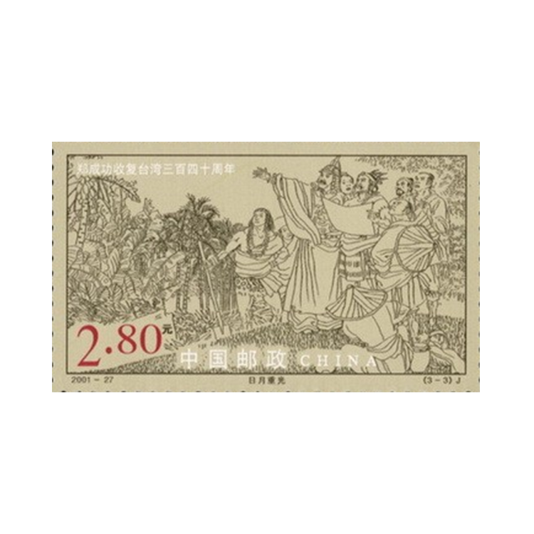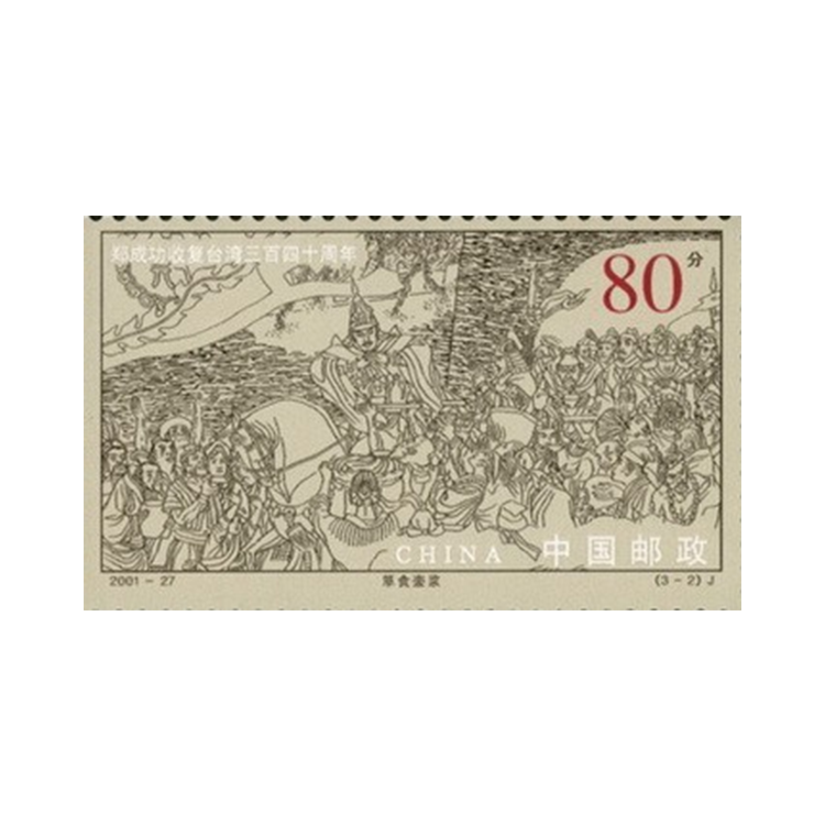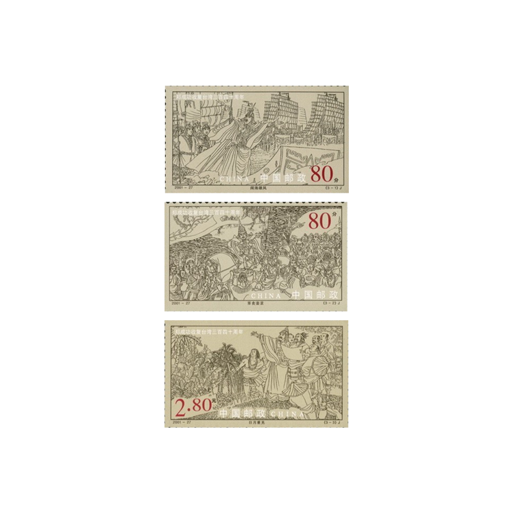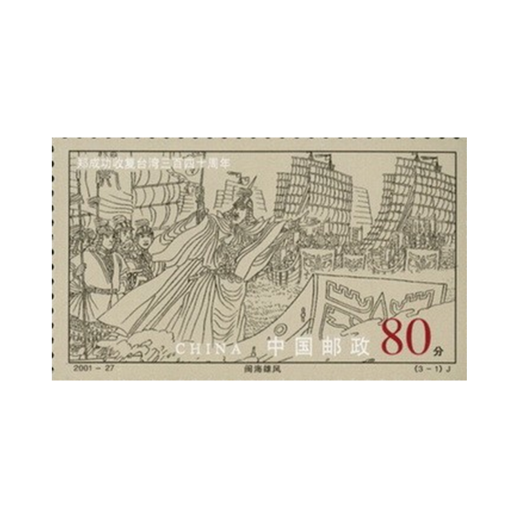 2001年12月13日,为纪念郑成功收复台湾340周年,国家邮政局发行了志号为2001-27J的《郑成功收复台湾三百四十周年》纪念邮票,全套3枚。