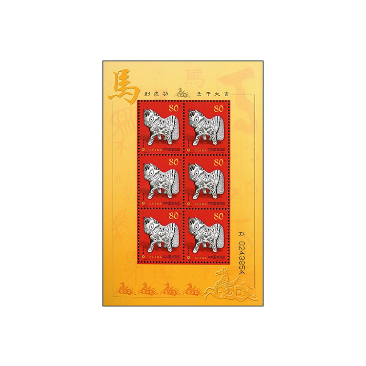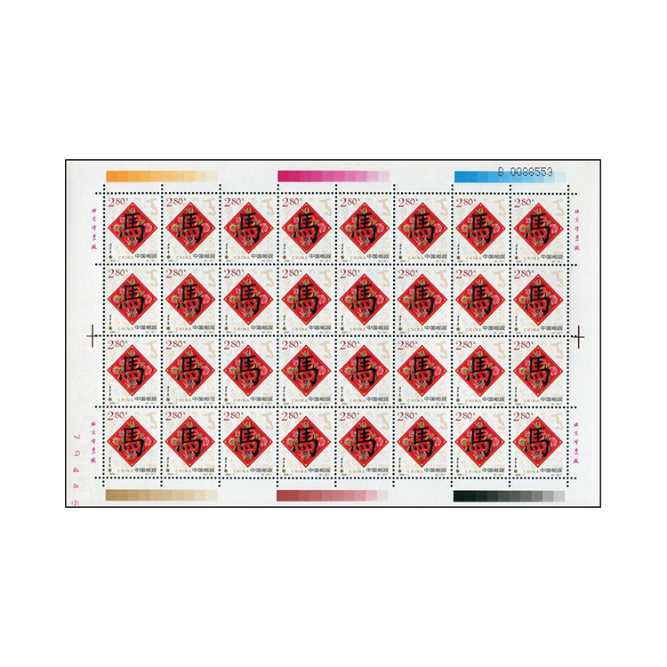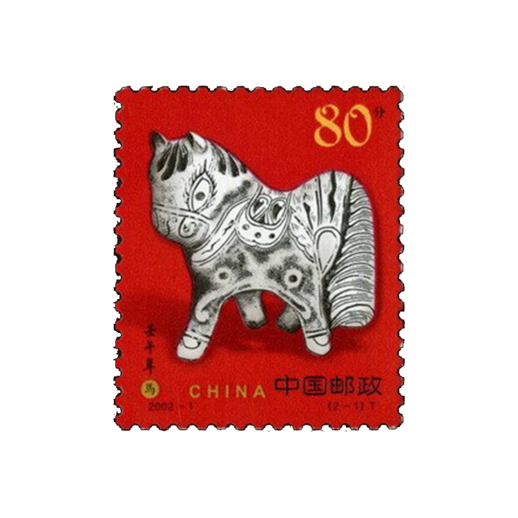 这套邮票是第二轮生肖邮票中的第11套,采用民间工艺手法设计和真(楷)书“马”字。