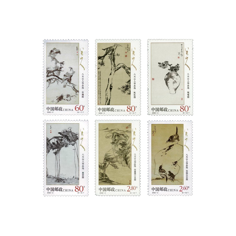 国家邮政局定于2002年1月20日发行《八大山人作品选》特种邮票1套6枚。