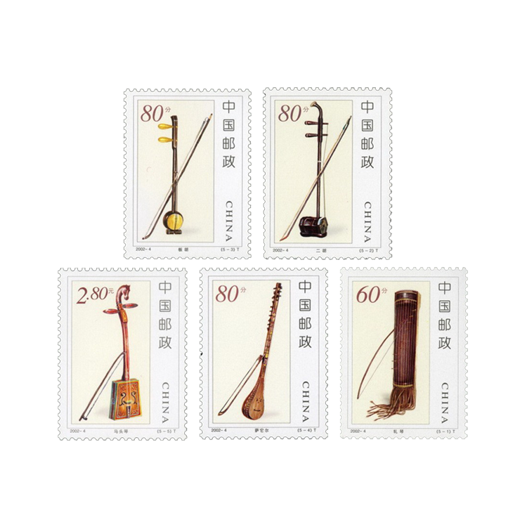 国家邮政局定于2002年2月23日发行《民族乐器-拉弦乐器》特种邮票1套5枚。