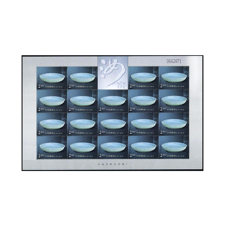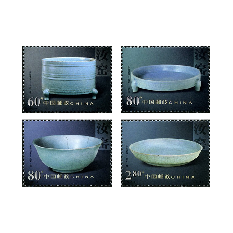 本套邮票选取北宋鼎盛时期的尊、洗、碗、盘等4件御用珍稀传世佳品,为天青色釉。展现了汝窑瓷器的艺术风格。现均存北京故宫博物院。