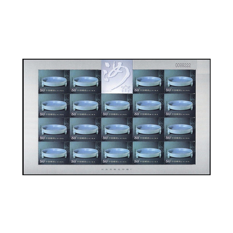 国家邮政局定于2002年3月30日发行《中国陶瓷-汝窑瓷器》特种邮票1套4枚。