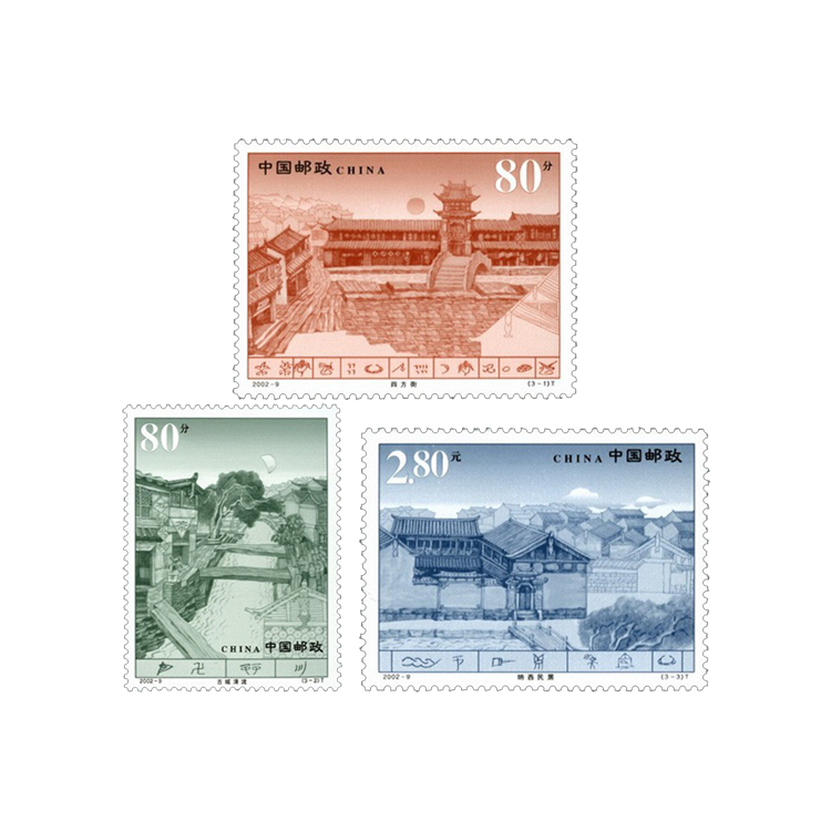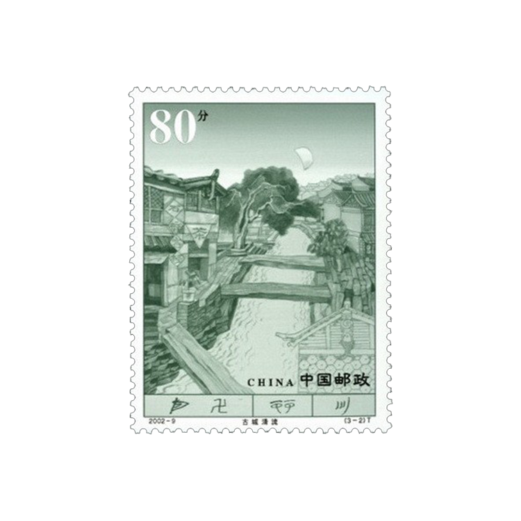 国家邮政局定于2002年5月1日发行《丽江古城》特种邮票1套3枚,小全张1枚。