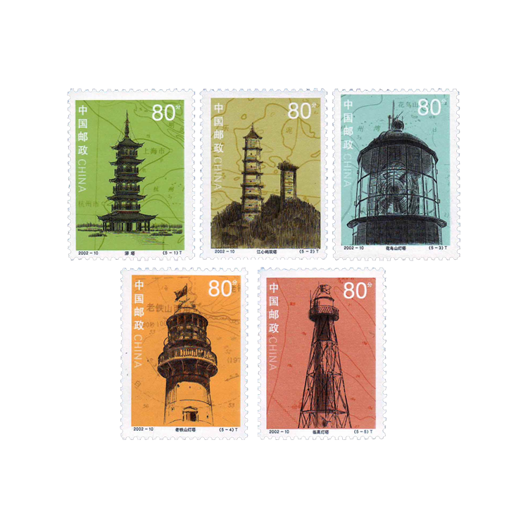 中国国家邮政局定于2002年5月18日发行《历史文物灯塔》特种邮票一套五枚。