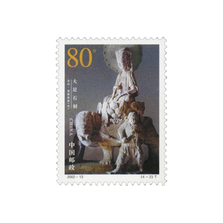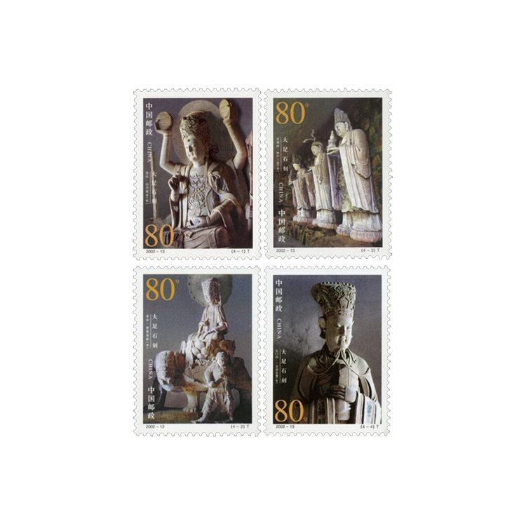 中国国家邮政局定于二00二年六月十八日发行《大足石刻》特邮票一套四枚,小型张一枚。