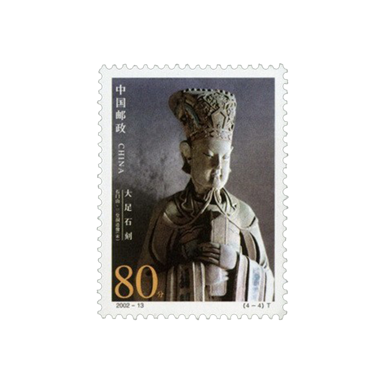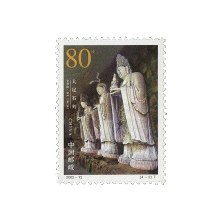 国家邮政局定于2002年6月18日发行《大足石刻》特种邮票1套4枚,小型张1枚。