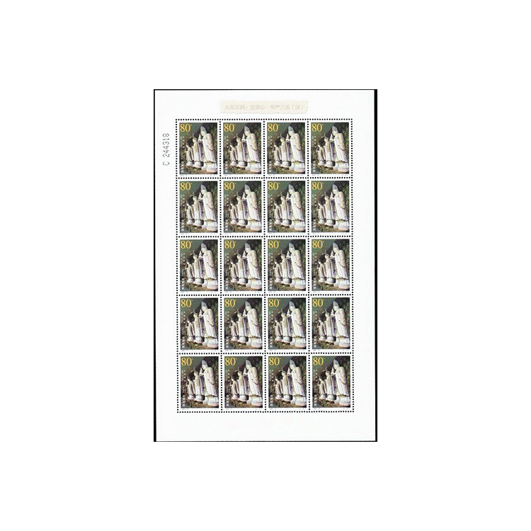 即将发行的这四枚邮票的图案名称依次为:北山·日月观音(宋)、北山·普贤菩萨(宋)、宝顶山·华严三圣(宋)、石门山·三皇洞造像(宋),四枚邮票的面值均为八十分,小型张图名为:宝顶山·千手观音,面值八元。