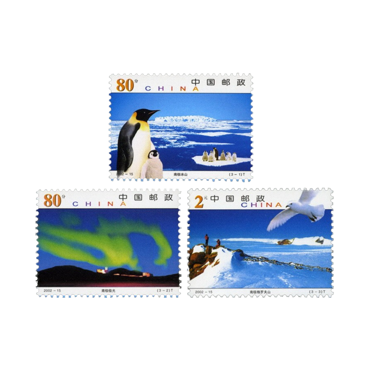 国家邮政局定于2002年7月15日发行《南极风光》特种邮票1套3枚。