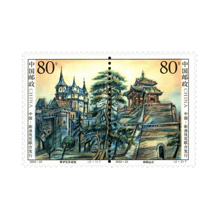 2002年10月12日,为展示两国历史悠久的古代建筑,国家邮政局和斯洛伐克邮政部门联合发行了《亭台与城堡》特种邮票,全套2枚。