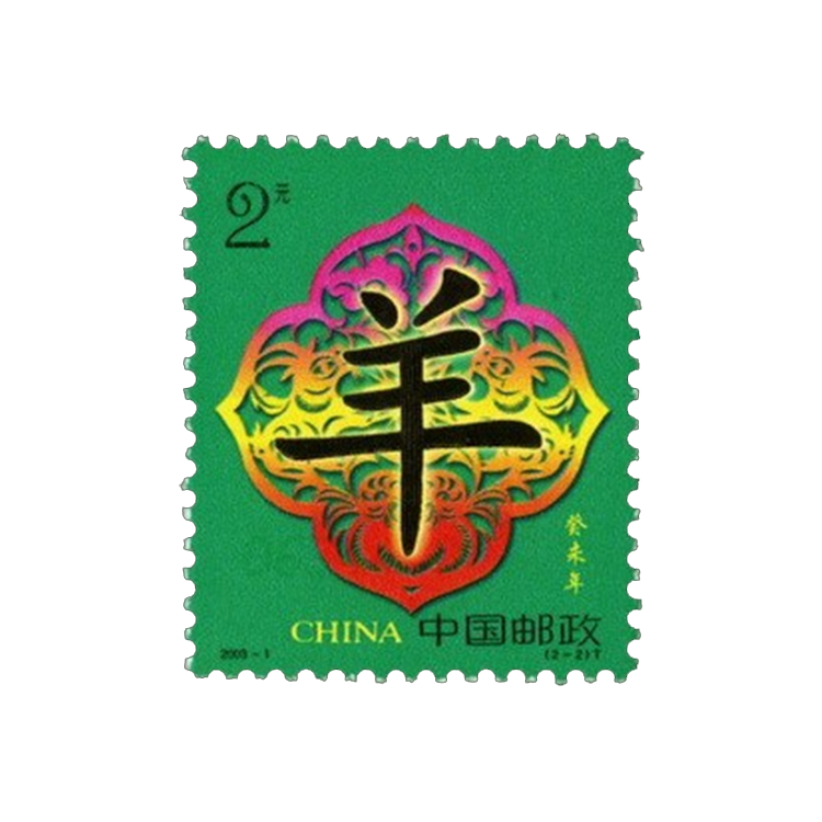这套邮票是第二轮生肖邮票中的第12套,也是最后1套。采用民间工艺手法设计和真(楷)书“羊”字。