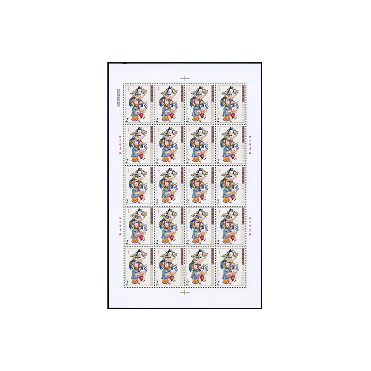 本套邮票是年画系列邮票的第一套。邮票上的四幅杨柳青木版年画,原稿选自著名的天津杨柳青画社,是从留存的精品中挑选出极具代表性的作品,在方寸中再现了原作的艺术魅力。由于杨柳青木版年画是在木版印刷的基础上又进行了手工设色,为最大限度地贴近原作,营造出一种统一、协调、典雅的艺术氛围,这套邮票在制版和印制等技术环节都有新的突破。