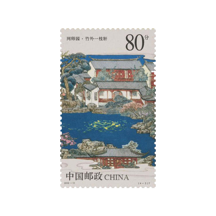 2003年6月29日,为了展示中国园林艺术的风貌和世界文化遗产,国家邮政局发行了《苏州园林-网师园》特种邮票,全套4枚,同时发行小版张1套1版。