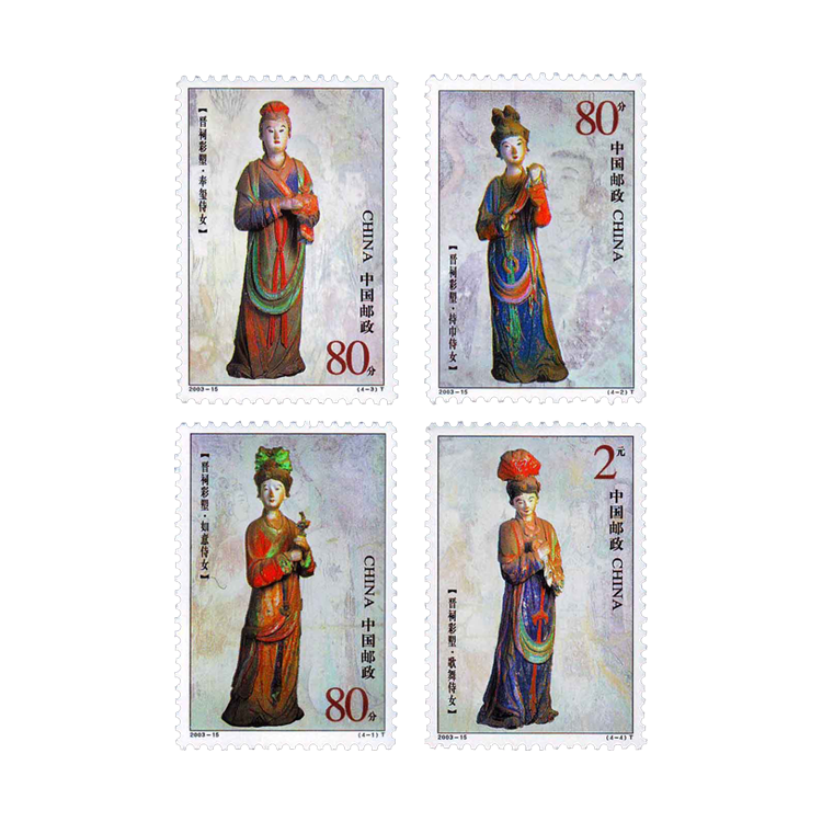 国家邮政局定于2003年8月16日发行《晋祠彩塑》特种邮票1套4枚。