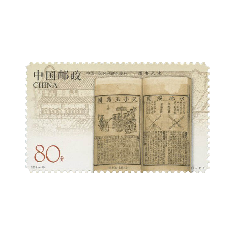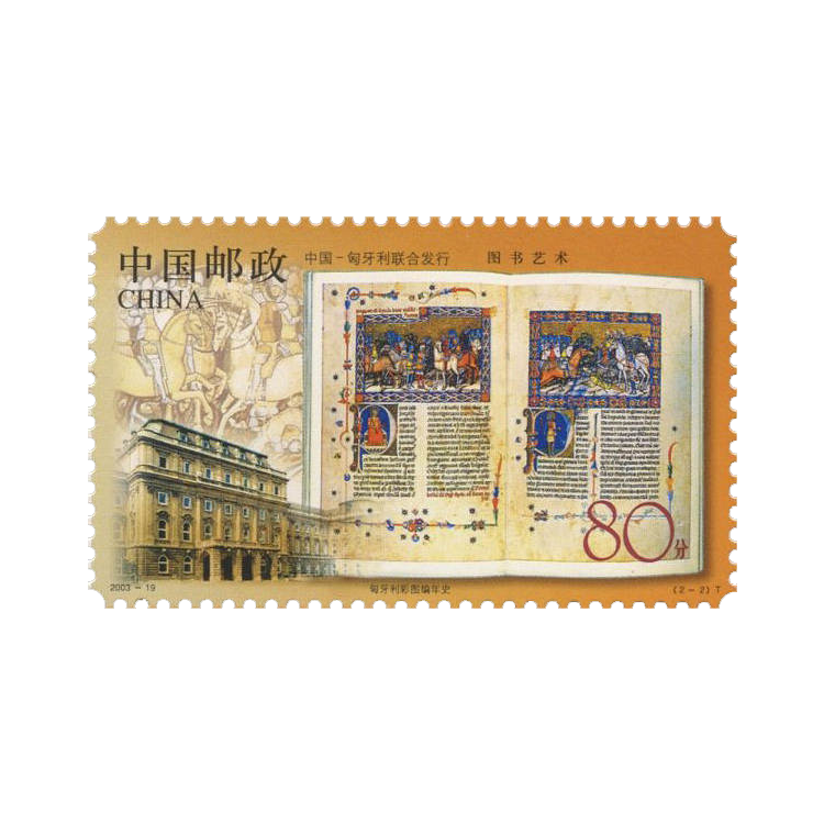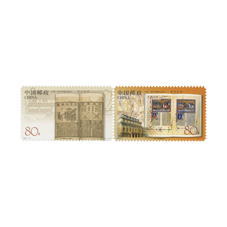 2003年9月30日,为纪念两国共同举办的中国图书艺术展活动,国家邮政局和匈牙利邮政联合发行了《图书艺术》特种邮票,全套2枚,同时发行小版张1套1版。