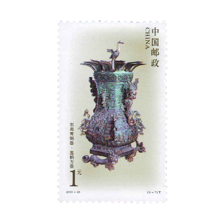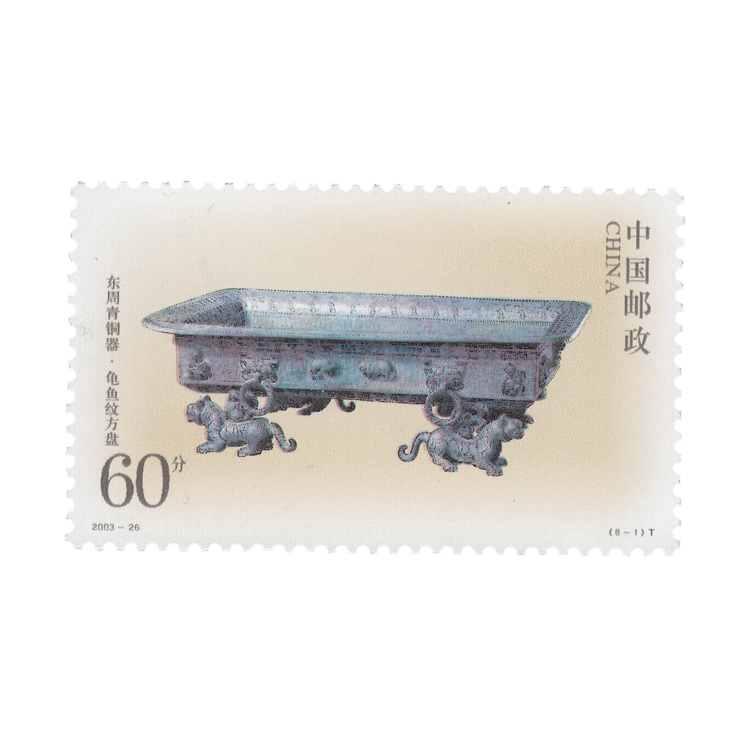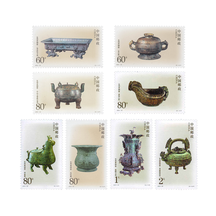 国家邮政局定于2003年12月13日发行《东周青铜器》特种邮票,1套8枚。