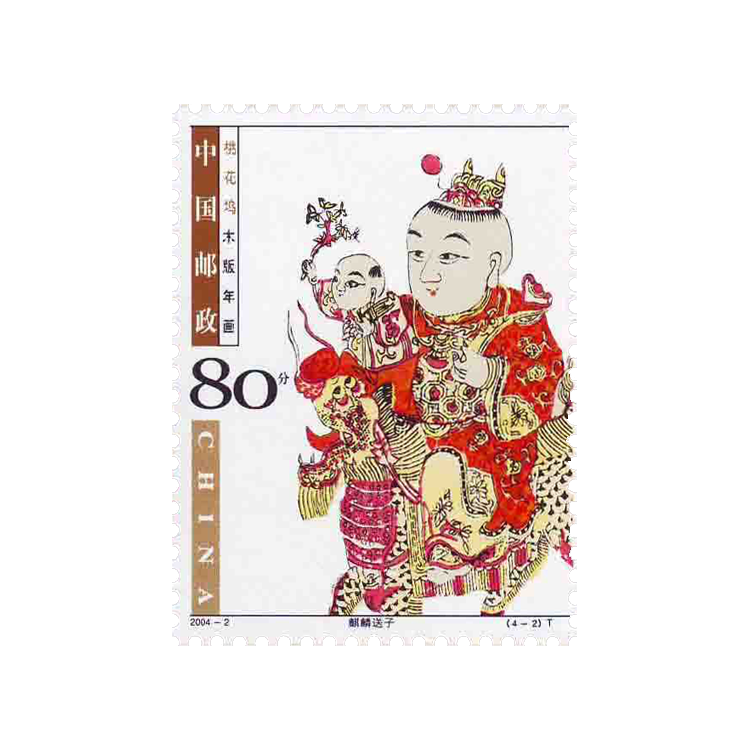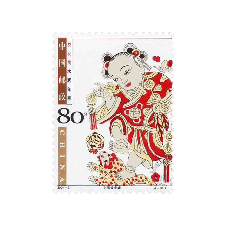 2004年1月14日,为了展示中国特有的民间绘画艺术遗产,国家邮政局发行了《桃花坞木版年画》特种邮票,全套4枚,小全张1枚,同时发行兑奖版(版式二)1套1版。