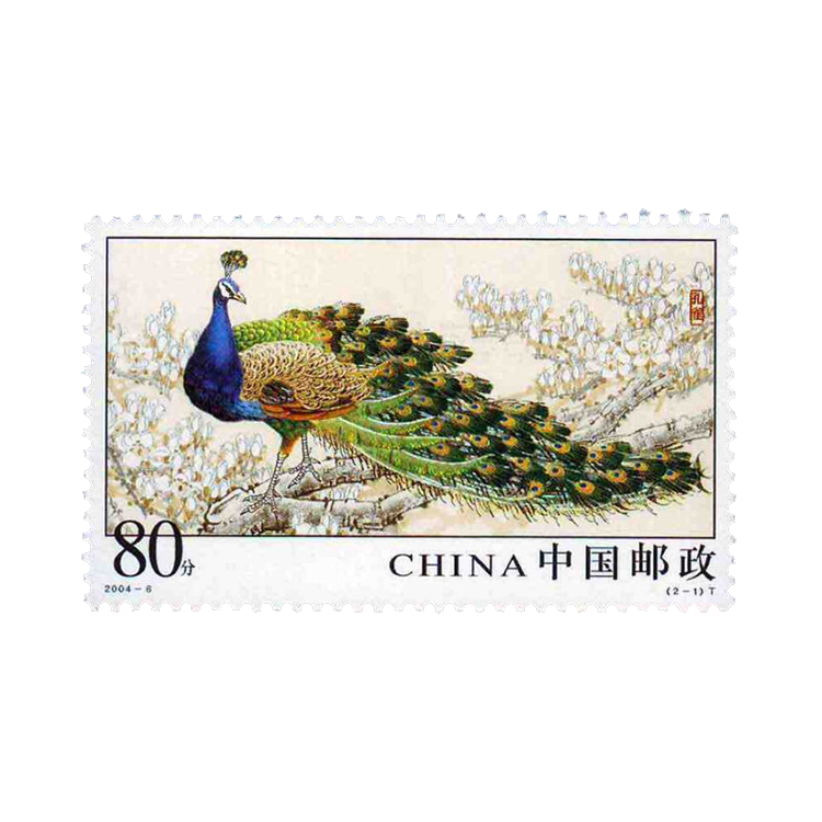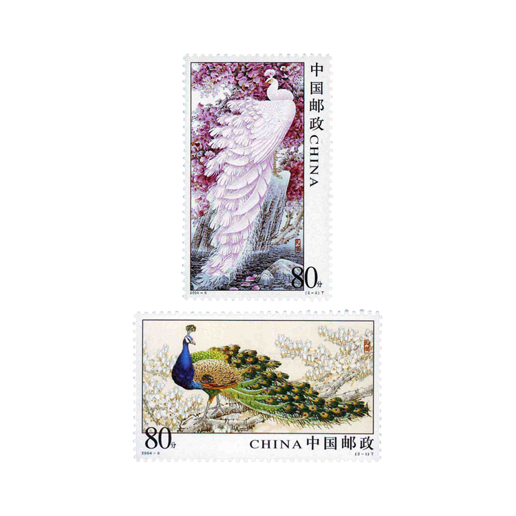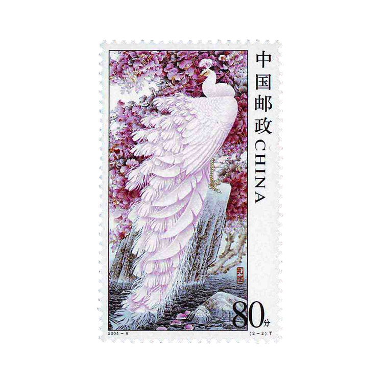 国家邮政局定于2004年4月13日发行《孔雀》特种邮票1套2枚,小型张1枚。