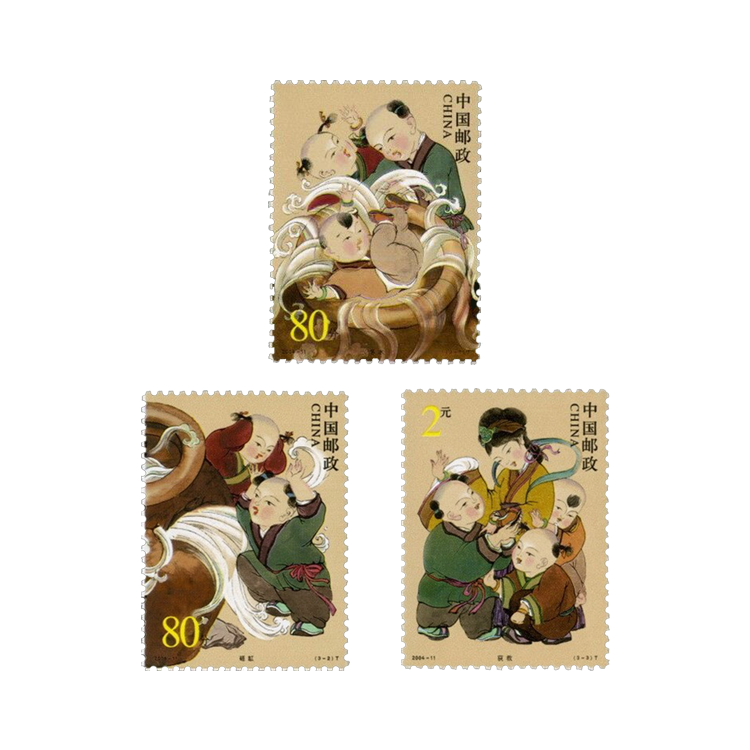 国家邮政局定于2004年6月1日发行《司马光砸缸》特种邮票1套3枚。