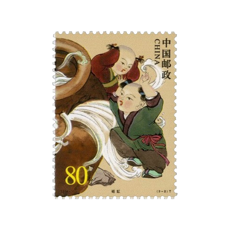 2004年6月1日,为了庆祝国际儿童节和弘扬中华传统美德,国家邮政局发行了《司马光砸缸》特种邮票,全套3枚,同时发行小版张(版式二)1套1版。