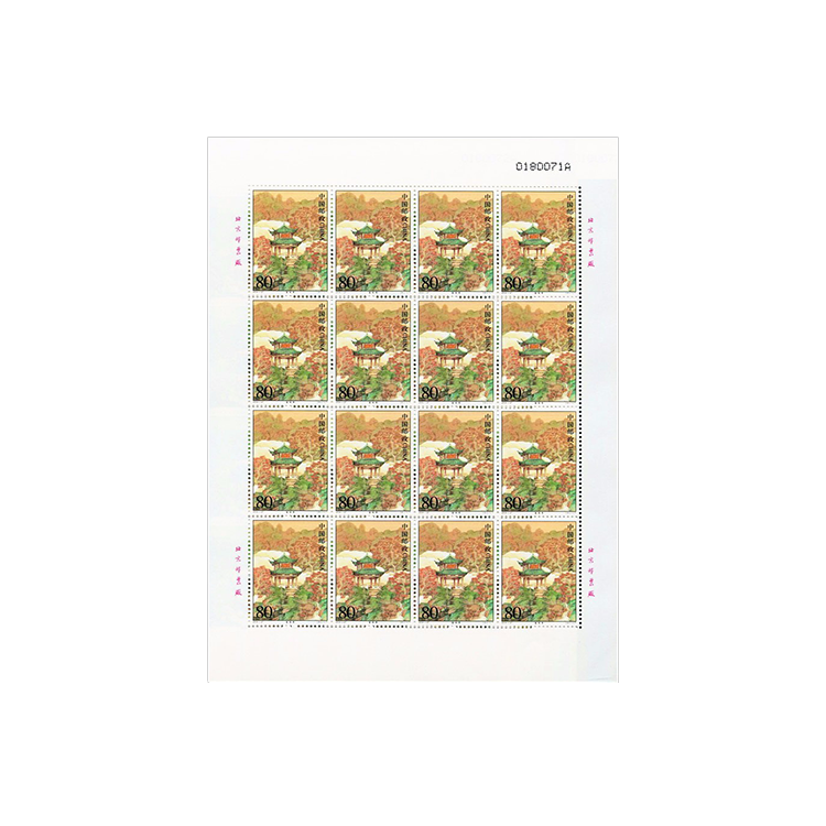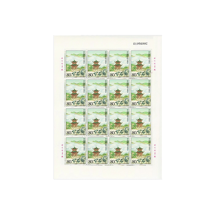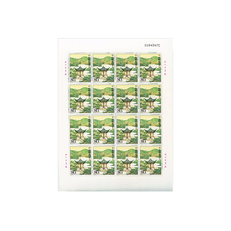 2004年11月3日,为了反映我国古亭文化和建筑艺术,国家邮政局发行了《中国名亭(一)》特种邮票,全套4枚,同时发行小版张(版式二)1套1版。