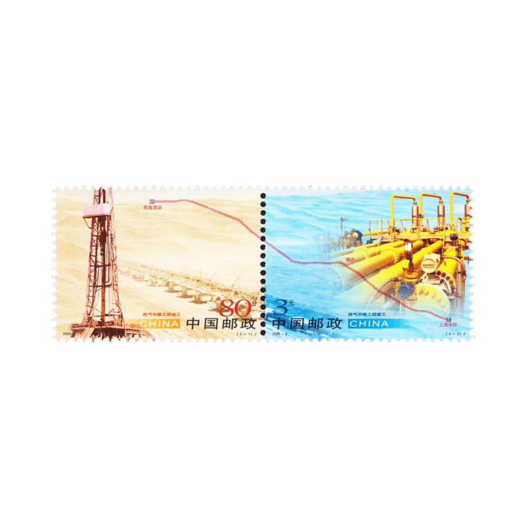 2005年1月8日,为祝贺西气东输工程竣工,国家邮政局发行了《西气东输工程竣工》纪念邮票,全套2枚。