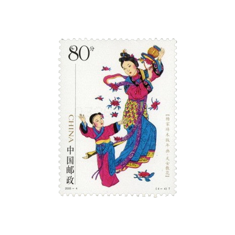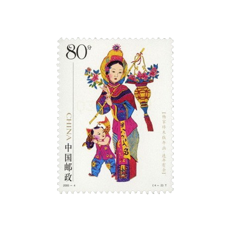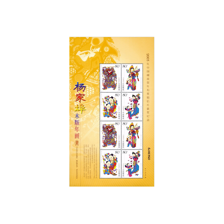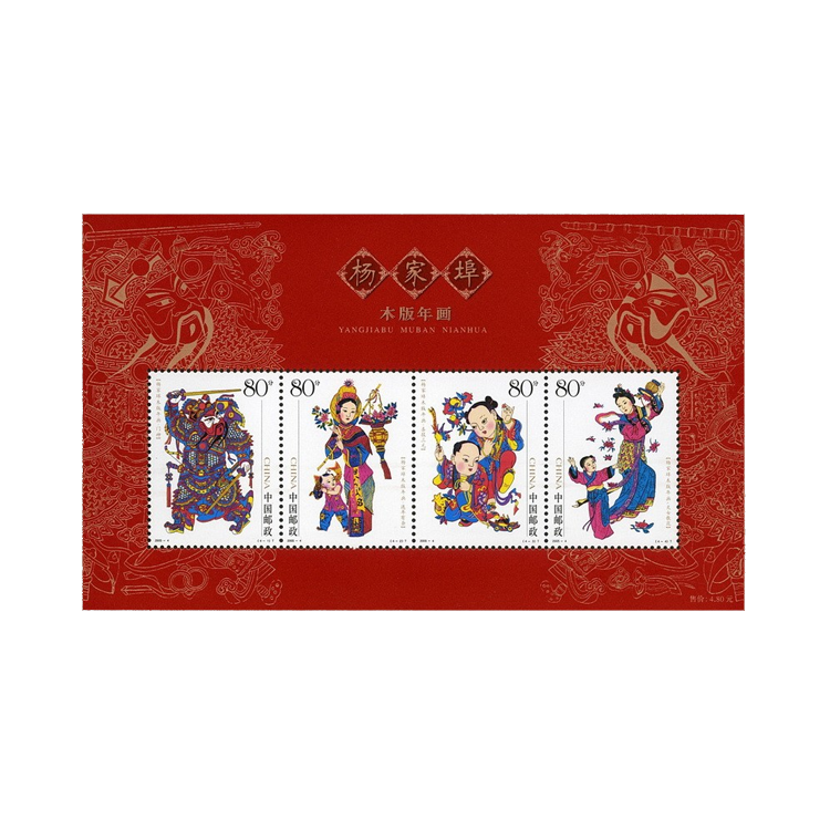 国家邮政局2005年2月1日发行《杨家埠木版年画》特种邮票1套4枚,另发行小全张1枚。